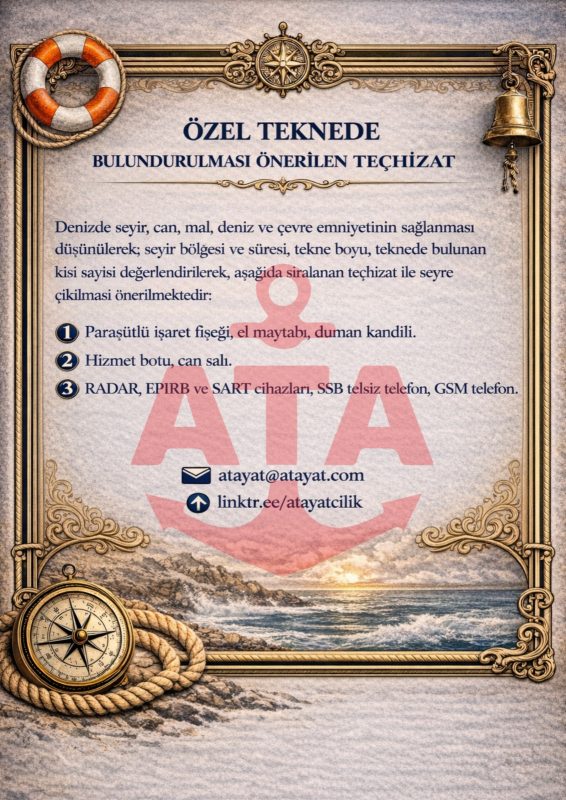 Özel Teknede Bulundurulması Önerilen Teçhizatlar