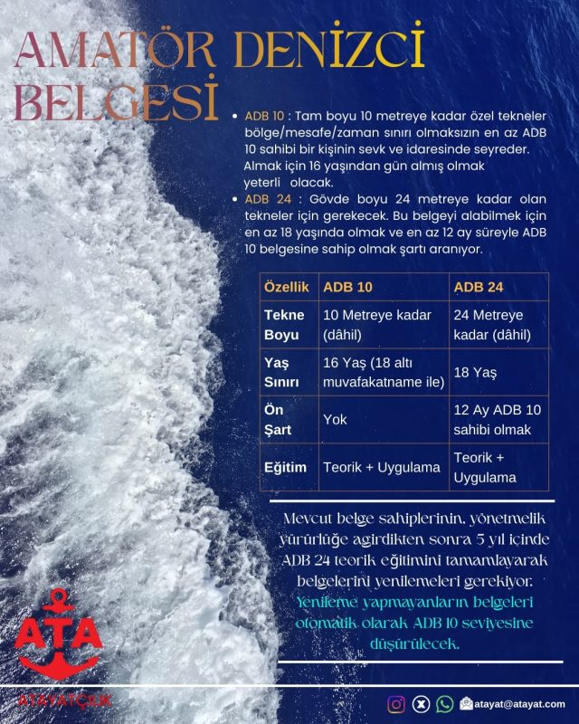 Amatör Denizci Belgesi ve Kısa Mesafe Telsiz Operatör Ehliyetleri
