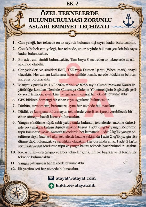 Özel Teknelerde Bulundurulması Zorunlu Asgari Emniyet Teçhizatı